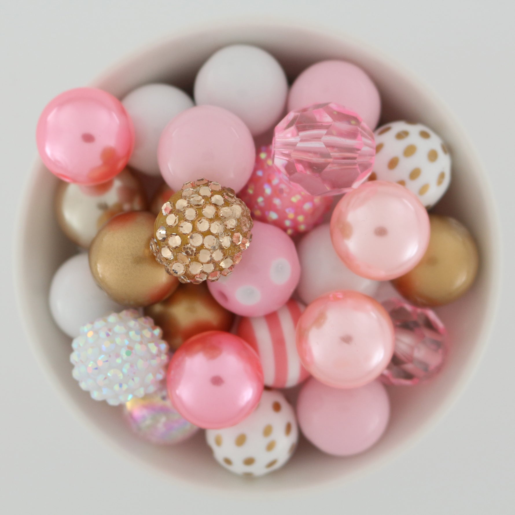 Cute 20mm bubblegum bead mix. Sparkle and fun pink, white and gold acrylic and resin bead mix.